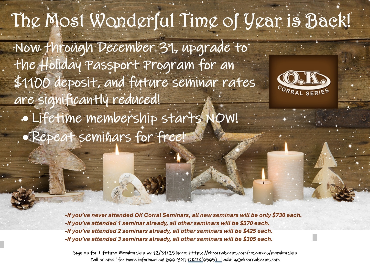 The O.K. Corral Passport Program is the most economical way for professionals to access all of the O.K. Corral Series seminars and a lifetime membership (which allows free repeat of seminars) for one low price. The *Holiday* Passport is a “pay-as-you-go” version of the [...]